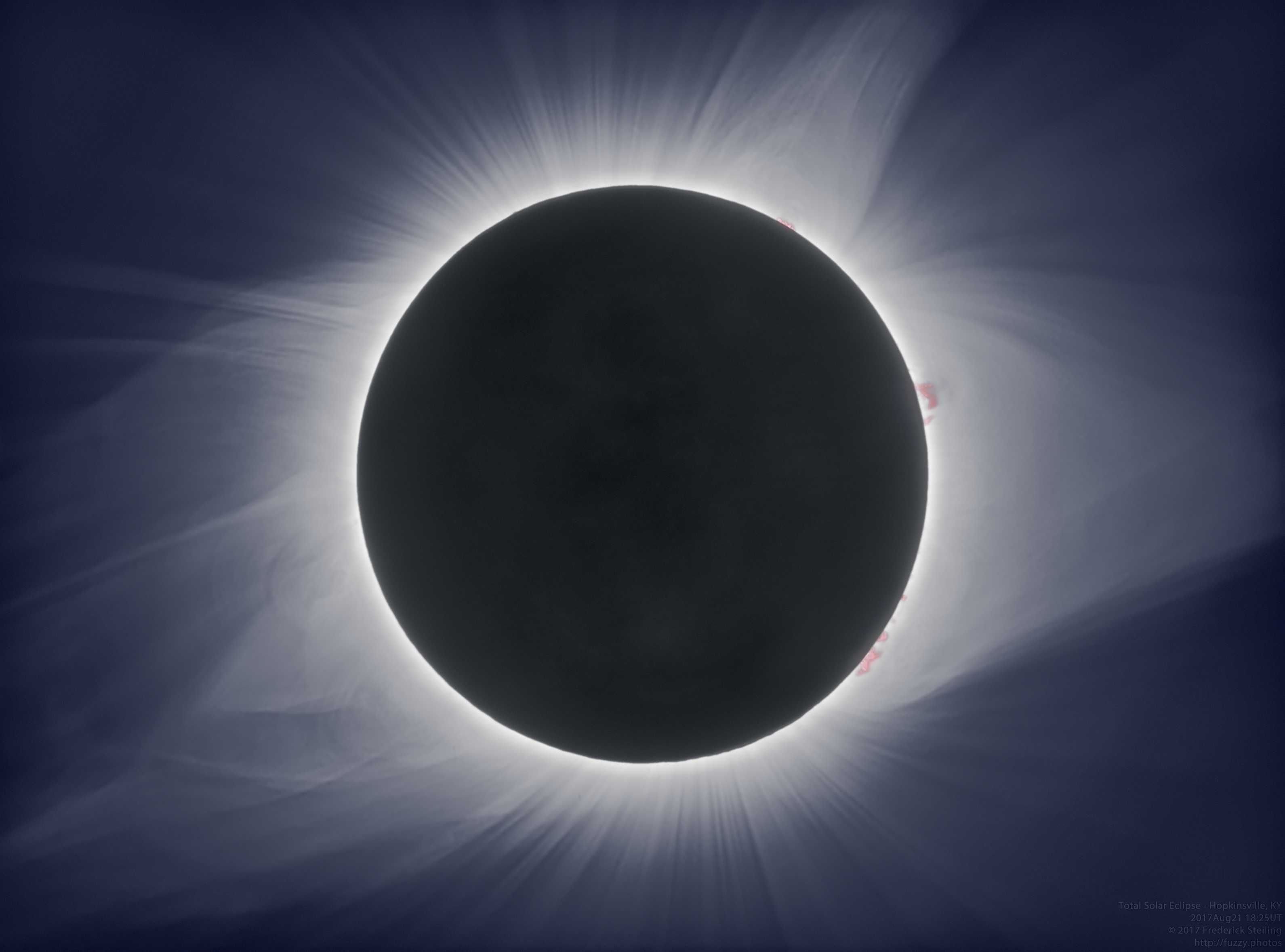 Still yet, the image doesn't do the event justice. Â However, I have teased and worked the data in a way that is perhaps atypical of many totality images, but so in a way that lends a view to a few things that I recall specifically from my experience: