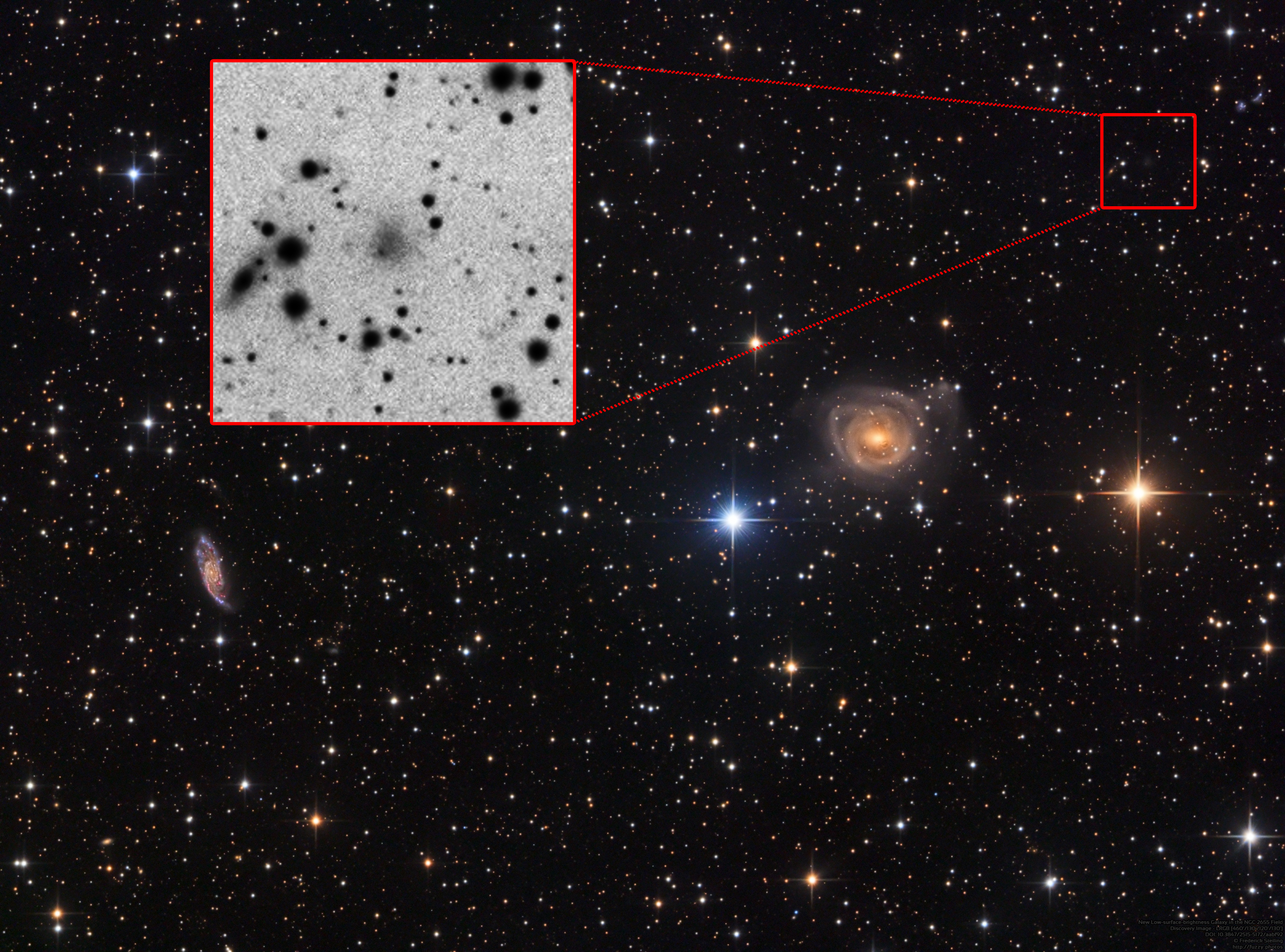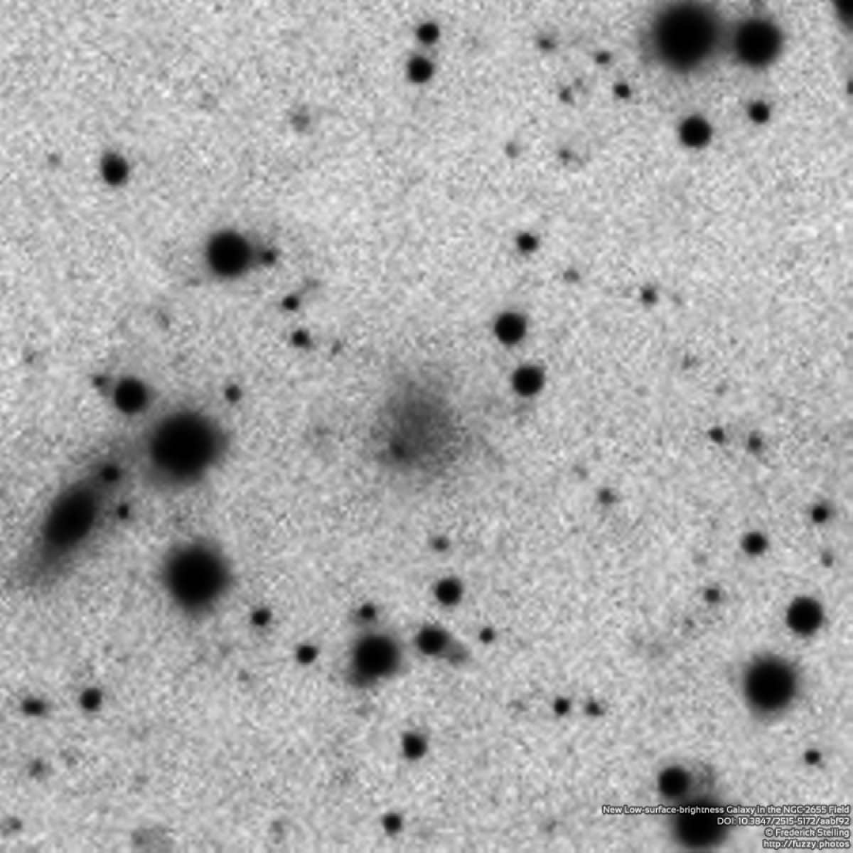 After 13 months engaged in analysis, research, and communication with academic astronomers, I am excited to announce my official discovery of a low surface brightness (LSB) galaxy in the NGC2655 field I completed in 2017 which is capped by my article published in the Research Notes of the American Astronomical Society (RNAAS) in collaboration with local imager Dan Crowson. When we talk about the smallest and dimmest objects in an image, this type of galaxy is one of the quintessential examples.